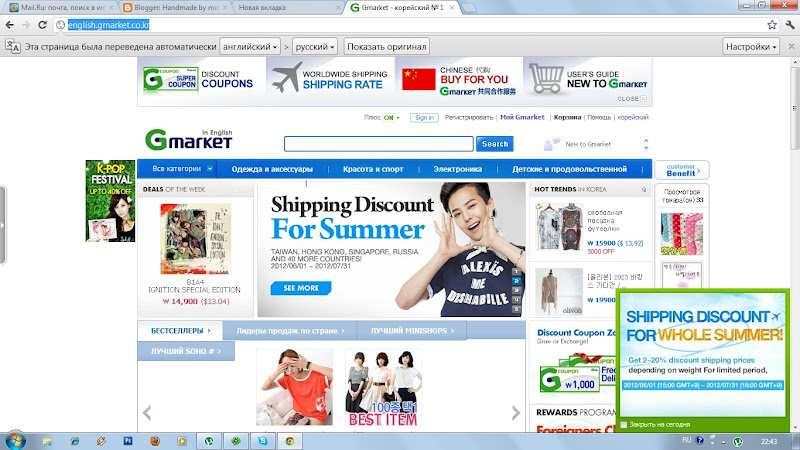 Заходим на сам сайт http://english.gmarket.co.kr/ ( Я сначала захожу на английскую версию, так проще сориентироваться в начале...